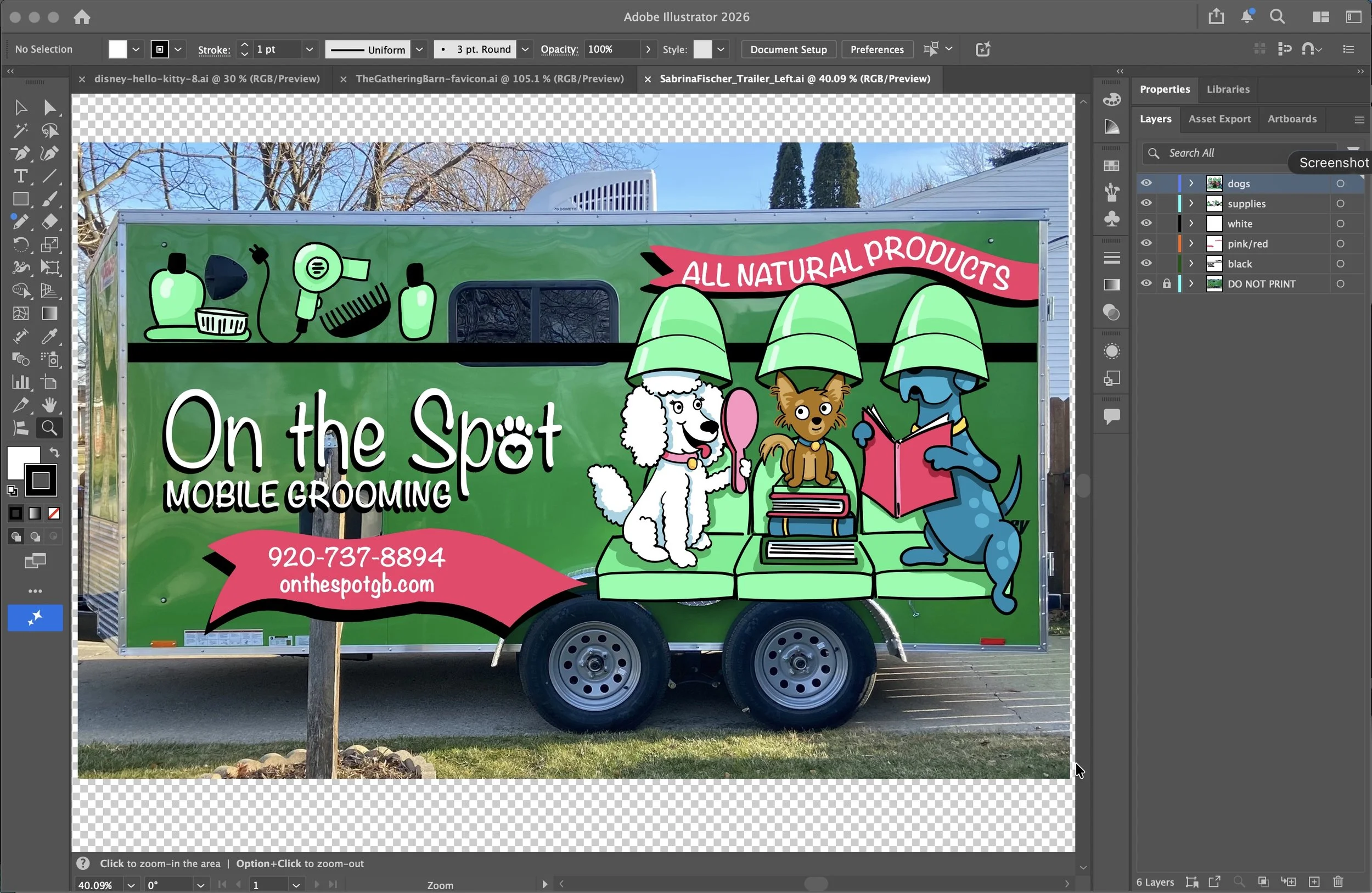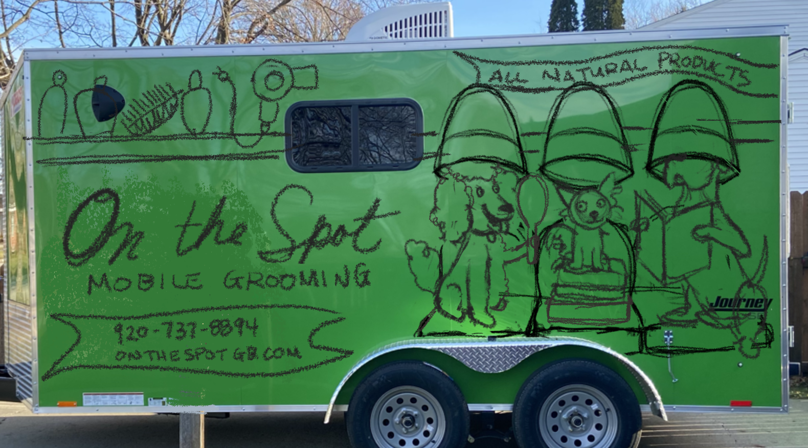 This was a very fun project for a client just starting their new business. They needed an eye catching design to wrap their mobile grooming trailer.